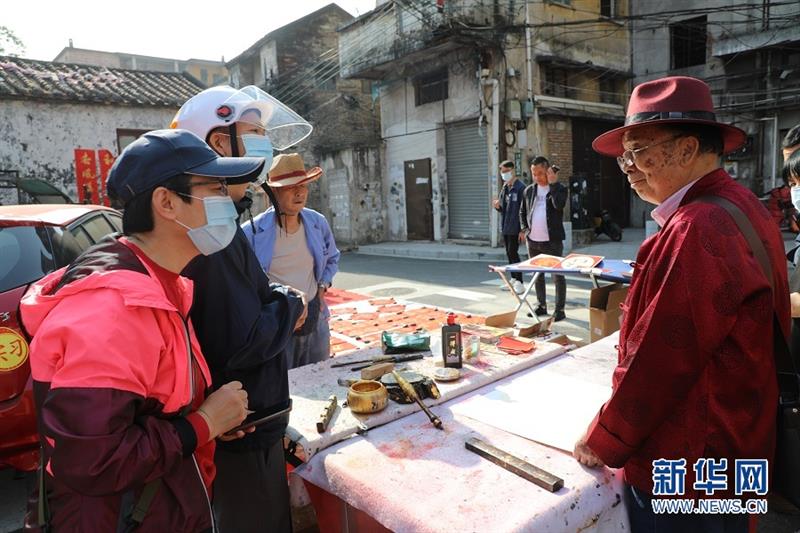 廖伯挥春、梁伯挥春、书生挥春……在这里写挥春的,大部分是上了年纪的老人。随着时代的变迁,虽然挥春可机器印制,但他们追求的是一种书法情怀。新华网 陈雪莹/文 林晓蕾/摄