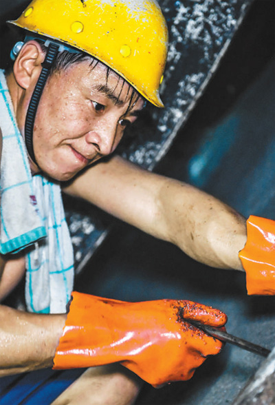 日前,引汉济渭工程秦岭输水隧洞挖掘现场,工人在进行隧洞初步支护。 |
