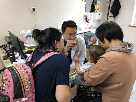 眼科专家认为,0-3岁儿童的视力筛查不该被忽视,这也是近视防控关口前移的重要方面。2018年6月,北京大学第一附属医院小儿眼科副主任医师肇龙在为一名幼儿检查眼睛。刘昶荣/摄