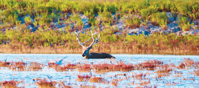 在江苏省东台市条子泥湿地活动的麋鹿。 |