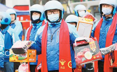 外卖骑手、快递配送员坚守岗位,保障居民过个好年—— 今年过年,我在城里送外卖