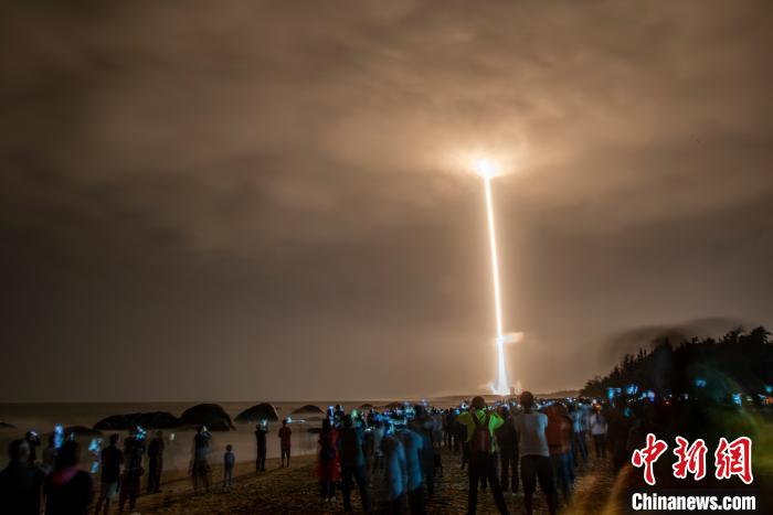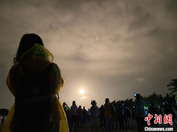 海南文昌:各地民众海滩熬夜观赏火箭发射