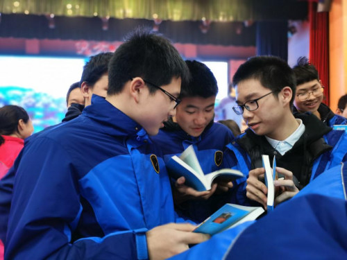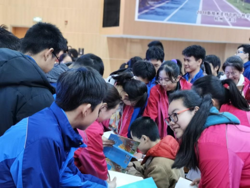 报告会后的仪式更加特别,九年级每个班推选出10名品学兼优的同学,作为代表各自保管一本《你能上北大》,请学长亲笔签名。这100多名学生代表,亲眼见证了学长为他们签名,在他们4个月后毕业时还将参加另一场特别仪式——在各自保管的《你能上北大》扉页里,签上自己的名字,并亲手传递给下个年级的优秀同学,依此类推,逐级传递——让智慧传递、让爱心传递。
