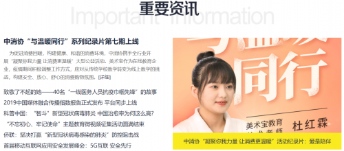 为促进消费回暖,构建健康、和谐的消费环境,中消协携手全行业开展“凝聚你我力量,让消费更温暖”大型公益活动。美术宝教育作为在线教育企业,疫情期间积极调整工作方式,应对从传统学校教学转变为线上教学的挑战,构建安全、放心、舒心的消费购物氛围,入选中国消费者协会(以下简称“中消协“)“温暖行动”优秀企业案例。