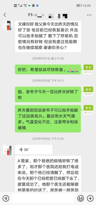 当晚,老人完成手术并住进ICU病房,钟文锋每天都会向他女儿询问其健康状况。一周后老人身体状况逐渐稳定才转入普通病房,钟文锋才终于放下心来。