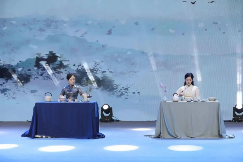 赛事中使用到的【问鼎汝瓷】、【问鼎钧瓷】、【鼎峰系列黛蓝萼红】、【鹤鼎堂银壶】、【天石茶器】搭配各种风格表演,在异中寻同,诠释茶艺力量,展现茶与器的融合,展现时代融合力!