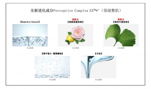Perceptive Complex EX™*1是指适应各种肌肤类型、状态、环境,打造健康肌肤而独自研发的成分。 Perceptive Complex EX™御银座感知复合臻粹™在原有Perceptive Complex™*2的基础上实现了全面升级。