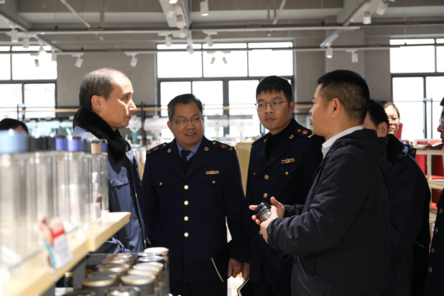 贾国锋局长一行对我司智慧仓储、生产、物流、展厅等一一参观视察,对企业的生产、销售、产品渠道等多方面情况进行一一询问,在得知货郎先生自主品牌产品多达20000多款后,对于市场监督部门更好地服务像货郎先生这样的企业,帮助企业在未来的道路上,能更好更快地发展。政府将通过现有的技术,帮助像货郎先生这样具有全国范围品牌影响力,又有自主设计、生产能力,对行业上下游供应链有整合能力的企业快速发展;并定期对货郎先生上市的每个商品,进行商品目录收入,在全国范围内对货郎先生的商品、标签、设计的等侵权问题,从政府层面进行追踪,对于侵权问题,依法采取行政手段进行严格干预和管理;同时鼓励货郎先生,通过自身系统积极检举侵权行为,通过法律手段维护自己的合法权益。
