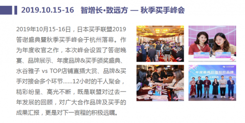 日本买手联盟成立于2017年5月,作为品牌方和买手的桥梁,日本买手联盟迄今为止已经在日本、深圳、杭州等地举办过8届品牌盛典,共吸引多个国家地区的400+品牌方、20000+买手参与,堪称买手界的最大盛事之一。
