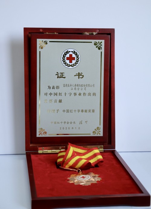 富德生命人寿江西分公司自2010年成立以来,坚守初心使命,积极承担社会责任,在精准扶贫与企业社会责任领域做出了突出贡献,于近日荣获“中国红十字奉献奖章”及荣誉证书。