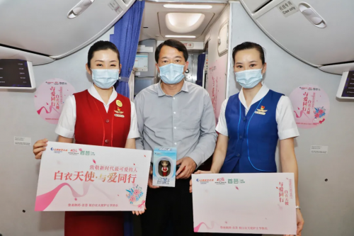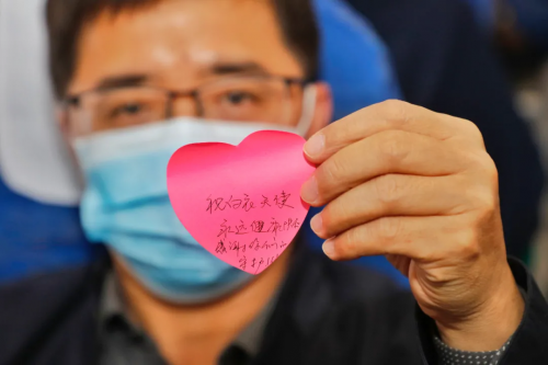 在护佑生命的主旋律中,无数医护人员的逆行唱响了战“疫”的精神赞歌,我们每个人也对医护工作者有了新的认识和感悟,有很多话想要对他们表达。乘务员们向旅客发放心形便利贴,邀请大家在卡通飞机的祝福板上留下对“白衣天使”的祝福,旅客们饱含热情,书写着最真挚的祝福。