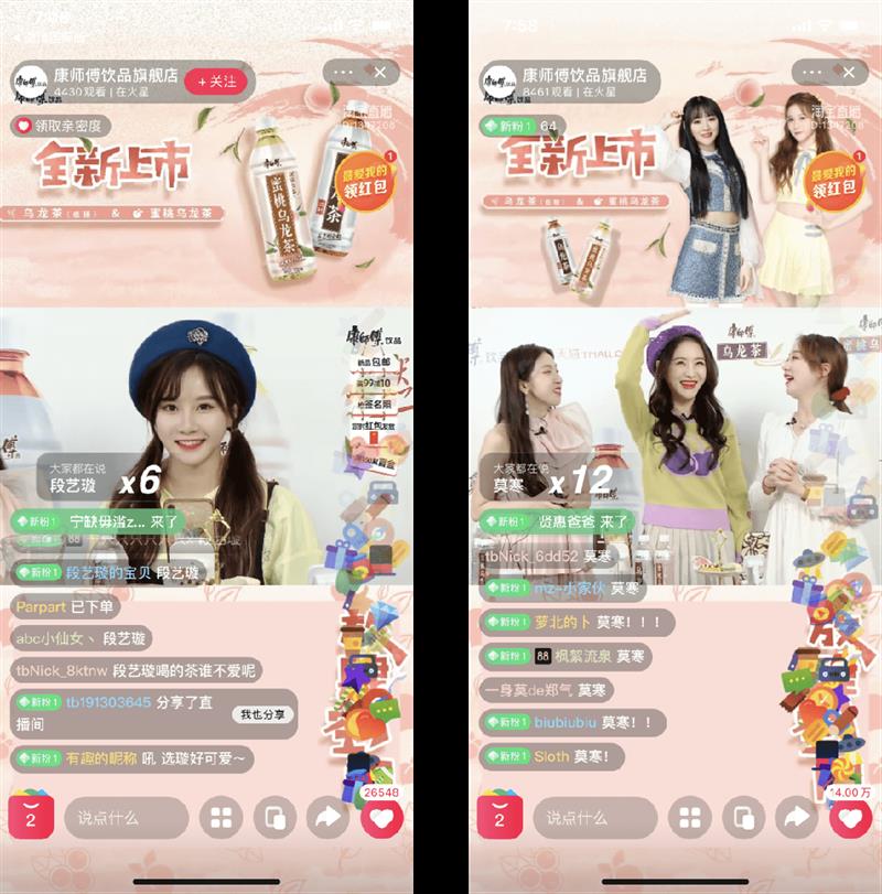 作为茶饮市场的引领者,康师傅饮品显然是捕捉到了这一新趋势,为了满足年轻消费者日渐强烈的低糖低脂以及多口味需求,近日,康师傅饮品全新推出康师傅乌龙茶和康师傅蜜桃乌龙茶,以“最强兄弟”联手出击,再次发力乌龙茶品类市场,为消费者带来好口味的同时,更带来健康收益。与此同时,康师傅乌龙茶和康师傅蜜桃乌龙茶更官宣新生代年轻偶像SNH48莫寒、段艺璇、张雨鑫为新品体验官,在年轻圈层得到极大曝光的同时,更通过直播活动,将新品上市信息强势扩散,进一步助推新品销量一路走高。