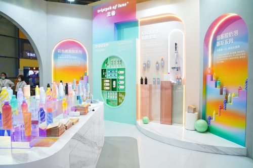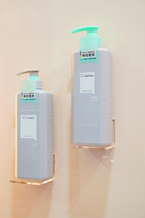 此次POLYVOLY美博会上,三谷重磅展出了三款明星产品——彩色氨基酸洗护套组、氨基酸奶泡慕斯系列、424洗发水防脱套组,其中424洗发水防脱套组更是在近期入围了“天猫2021年度金妆奖人气新品牌”。