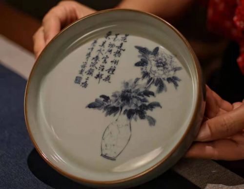 在多位制瓷前辈指点下,独立烧制汝窑柴窑,自得一套烧制汝瓷的经验手法。釉面细润如玉,古雅沉着。在保持传统工艺传承的同时,使用传统国画里传世经典融入器物的绘制。