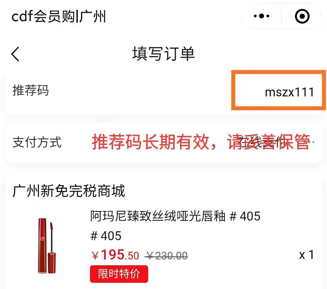 cdf会员购广州(属于广州白云机场,经常有各种国际大牌5折促销不容错过,并且支持线下白云机场免税店自提,下单时输入推荐码:mszx111即可)