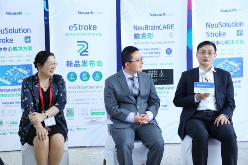 为持续促进脑卒中临床诊疗技术水平提升,本次大会,东软医疗与国家百万减残工程规范指导办公室主任、首都医科大学副校长吉训明团队联合发布eStroke国家溶栓取栓影像平台2.0,用实际行动助力国家百万减残工程建设。