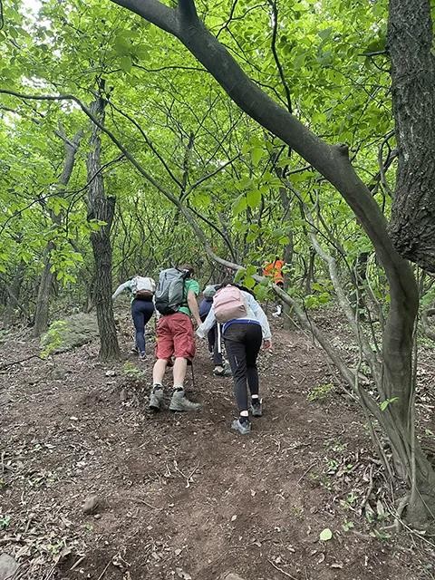 第二天,学生们在营地吃过早饭后又亲手制作了三明治,以备午间补充能量。阳光和煦、天气宜人,因此林间的视野很清楚,对学生们的徒步远行很有助益。登山沿路都有直饮水和卫生间可供学生们使用,但因为距离长,且海拔变化幅度大,这条线路对学生们来说仍是不小的挑战。学生们应该为他们的体力和力量感到自豪。直面挑战的韧性以及自主探索的意愿,是欧美大学在录取学生时非常看重的品质。