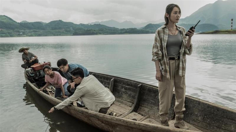这是一部以网络发行为主的科幻电影,名字叫《超能水怪》,5月10日在浙江丽水遂昌开机,今日拍摄在遂昌湖山取景。在通往拍摄的路上,小编远远就看到了排成长长的车队和10多辆船只在等候拍摄。