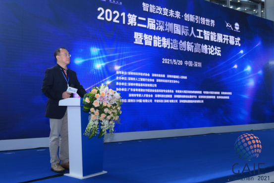2021年5月20日,由深圳市科学技术协会、深圳市商务局、深圳市福田区人民政府共同指导,深圳市科技开发交流中心、深圳市人工智能行业协会联合主办的2021第二届深圳国际人工智能展开幕式暨智能制造创新高峰论坛在深圳会展中心(福田)启幕。深圳市人大常委会副主任、深圳市科协主席蒋宇扬,俄罗斯工程院外籍院士、深圳大学副校长张学记,美国国家工程院院士、南方科技大学学术副校长张东晓,国家信息中心首席信息师、分享经济研究中心主任张新红,深圳市科技开发交流中心主任李松、深圳市人工智能行业协会监事会主席、专家委员会主任刘宏等领导嘉宾出席了开幕式。