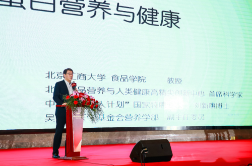 在总经理余斐女士一番精彩演讲之后,北京工商大学食品学院教授刘新旗发表主题为《蛋白质营养与健康》的演讲,引起了现场嘉宾们的极大兴趣,对蛋白营养与功能性食品有更进一步的了解!