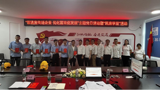 12月15日,中建筑港七公司老城印刷中心项目联合澄迈县人民检察院开展“普法宣传进企业 优化营商促发展”主题党日活动暨筑廉学堂活动,澄迈县人民检察院第二检察部主任、第二党支部书记李宇,第六检察部负责人、支部宣传委员邓仕琨、第三检察部主任周序孔,法警大队长林伟出席活动。
