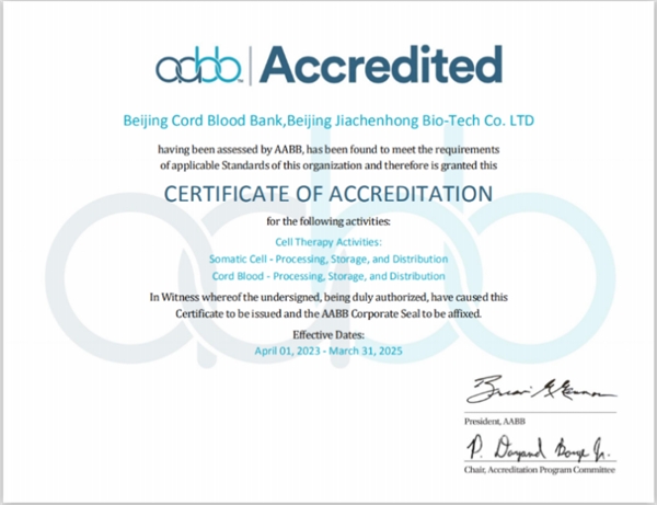 2023年3月,北京市脐血库及其设置运营单位北京佳宸弘生物技术有限公司接受了AABB(血液与生物治疗促进协会)为期2天的认证审核并顺利通过审核。这是自2013年1月1日北京市脐血库首次获得AABB认证后连续第五次通过该认证复审。