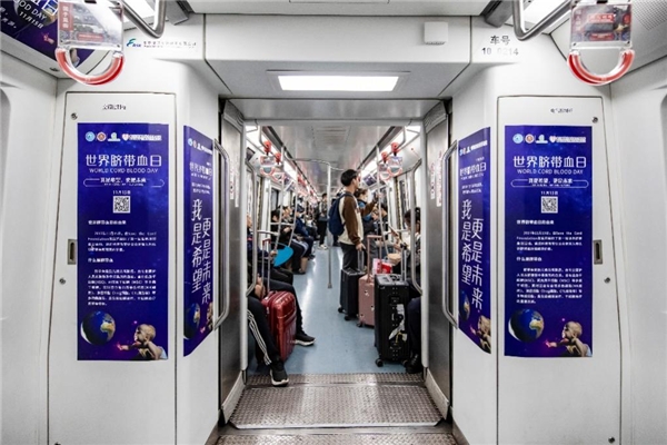 与此同时,在人潮涌动的北京地铁10号线,人们注意到,数辆列车已悄然换装上线,摇身变成了带有“世界脐带血日”“请珍惜每一份脐带血”宣传海报的“世界脐带血日专列”,更多人因此了解了脐带血的价值,感受到这份“生命厚礼”的宝贵。
