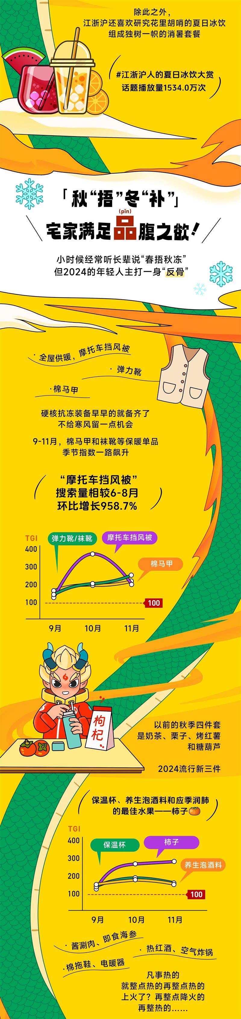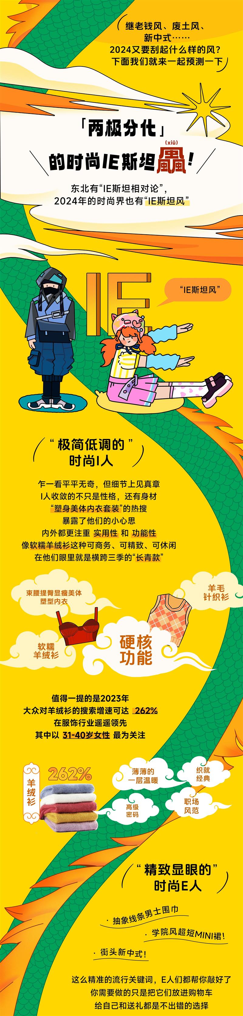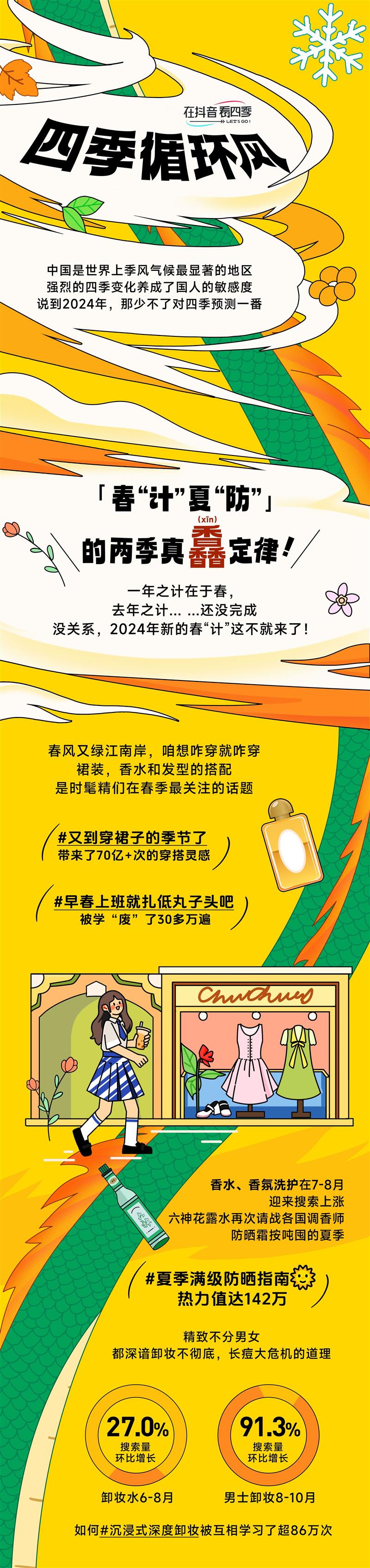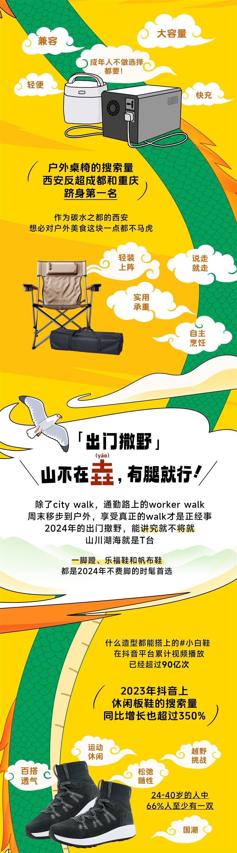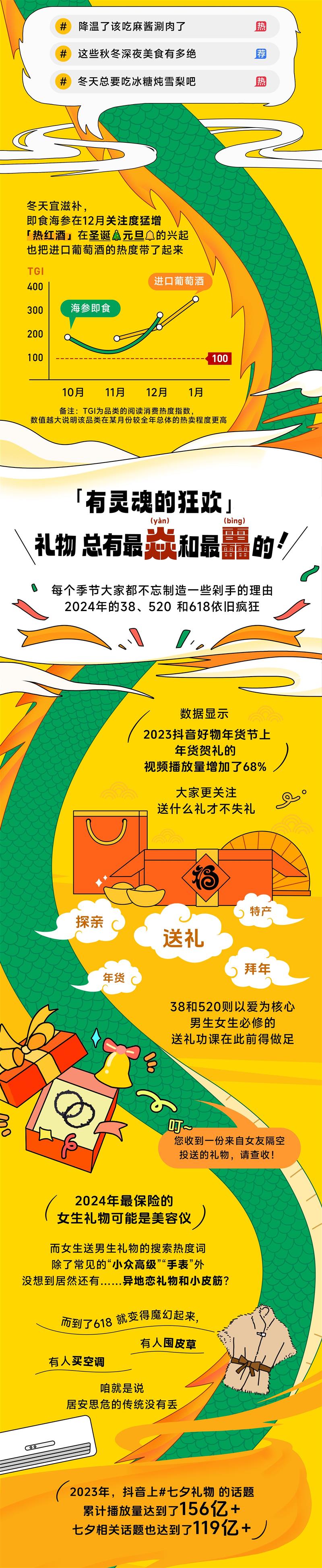 12月28日,巨量算数联合巨量星图、抖音电商共同发布《2024「过来人」龘年乘飍指南》(以下简称为“指南”)趋势预测报告,总结了与食饮、服饰、家居家电、3C数码、美妆护肤等行业息息相关的四大趋势。