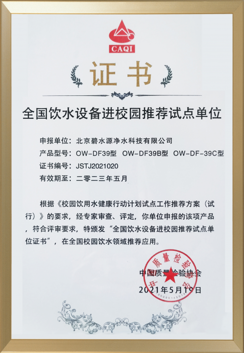 再获肯定!碧水源入选“全国饮水设备进校园推荐试点单位”