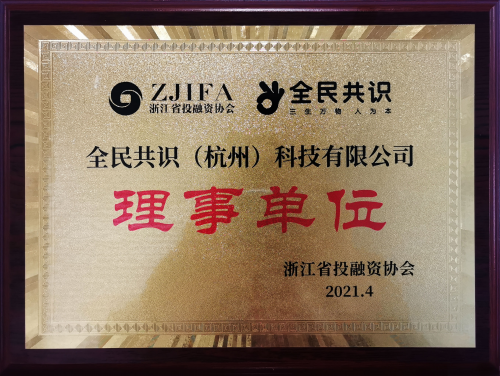 浙江省投融资协会授予全民共识(杭州)科技有限公司“理事单位”!