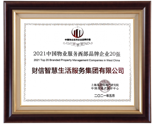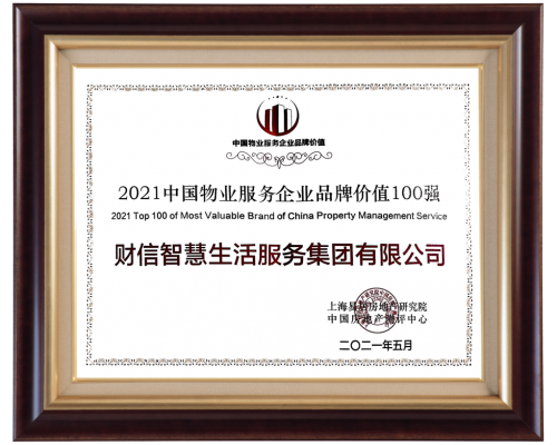 品牌价值凸显!财信智慧服务荣膺2021中国物业服务企业品牌价值100强