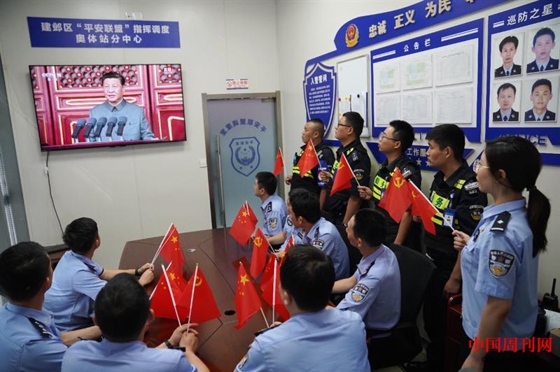 南京建邺公安分局全体民警、警辅实时收看“庆祝中国共产党成立100周年大会”