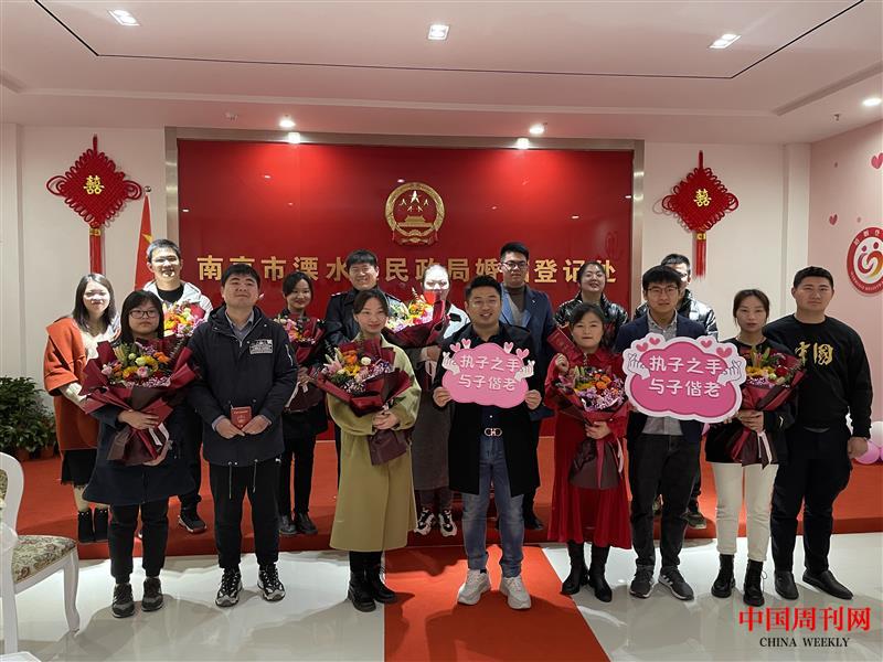 南京溧水区举办“以梅为媒 幸福起航”集体颁证仪式 8对新人喜结连理