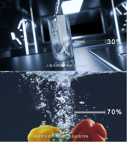生活中往往注重饮用水,而忽略了家庭用水也需要净化。其实喝水只占人体每天需要吸收的30%水分,有70%是通过食物方式摄入,而清洗食材的用水是含有余氯的自来水,余氯会产生国际公认的致癌物三氯甲烷,有害身体健康,因此生活用水也需要净化。