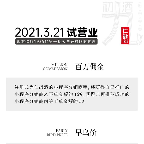 初九出酒丨仁战官方商城小程序上线,百万佣金发放中!