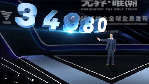 当晚20点30分,隆鑫通用动力股份有限公司副总裁、VOGE无极国内营销中心总经理何军先生公布无极500AC的市场指导零售价为34980元,在北京、西安、昆明三城首发。为了满足更多用户的试驾需求,VOGE无极机车将在全国各地陆续开展试乘试驾活动,各地无极专卖店也将提供新车试驾品鉴服务。
