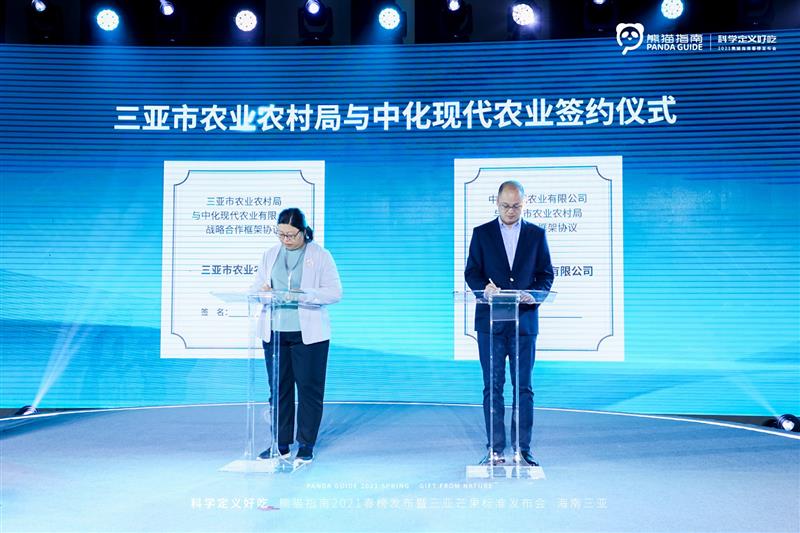 3月29日,由中国优质农产品榜单熊猫指南主办,三亚市政府协办的熊猫指南2021年春榜发布暨三亚芒果标准发布会在三亚揭幕。三亚市政府副市长周俊,国家粮食和物资储备局科学研究院党委副书记谭本刚,三亚市农业农村局副局长曲环,先正达集团中国副总裁兼MAP与数字农业总裁应敏杰,熊猫指南CEO毛峰和COO马祎,中国金茂三亚公司总经理李嵘等人莅临发布会现场。