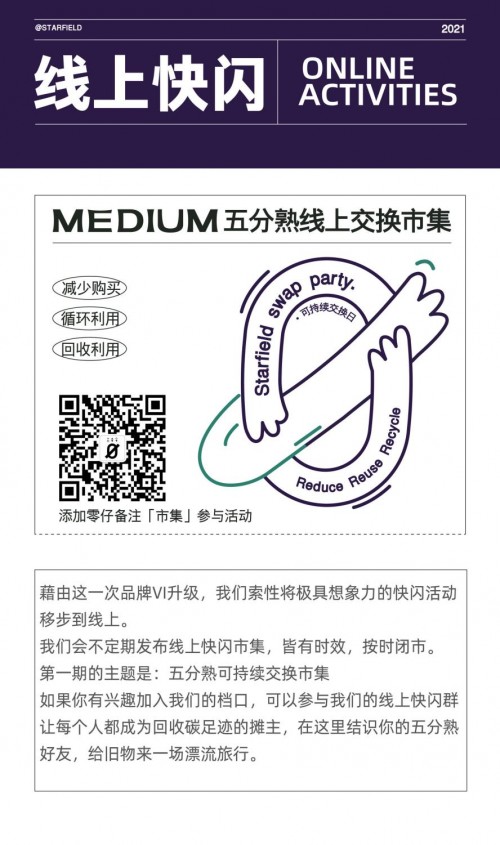 而升级过后,星期零还将「五分熟」活动搬到了线上,成为一个线上的二手交换市集,来强化星期零可持续生活的形象。