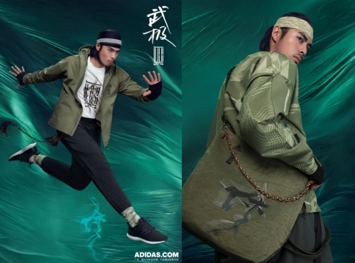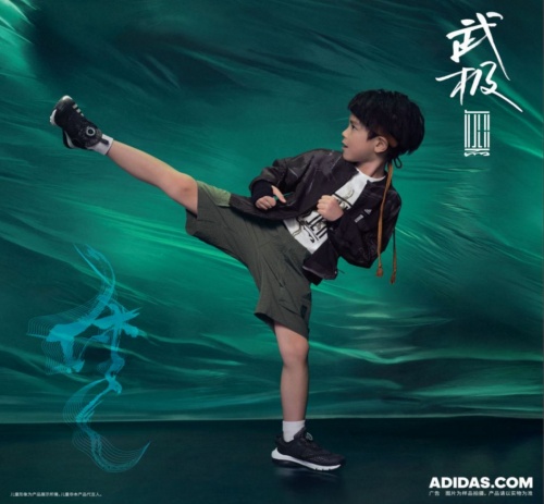 2022年4月,阿迪达斯 “武极” 系列推出以 “律” 作为主题的夏季新品,延续年度品牌沟通主题 “致侠士“。本季新品运用书法中的草书来表现 “律动与不羁”,透气泡泡纱材质搭配武侠风设计,致敬“原则不移,初心不改”的侠士特质。