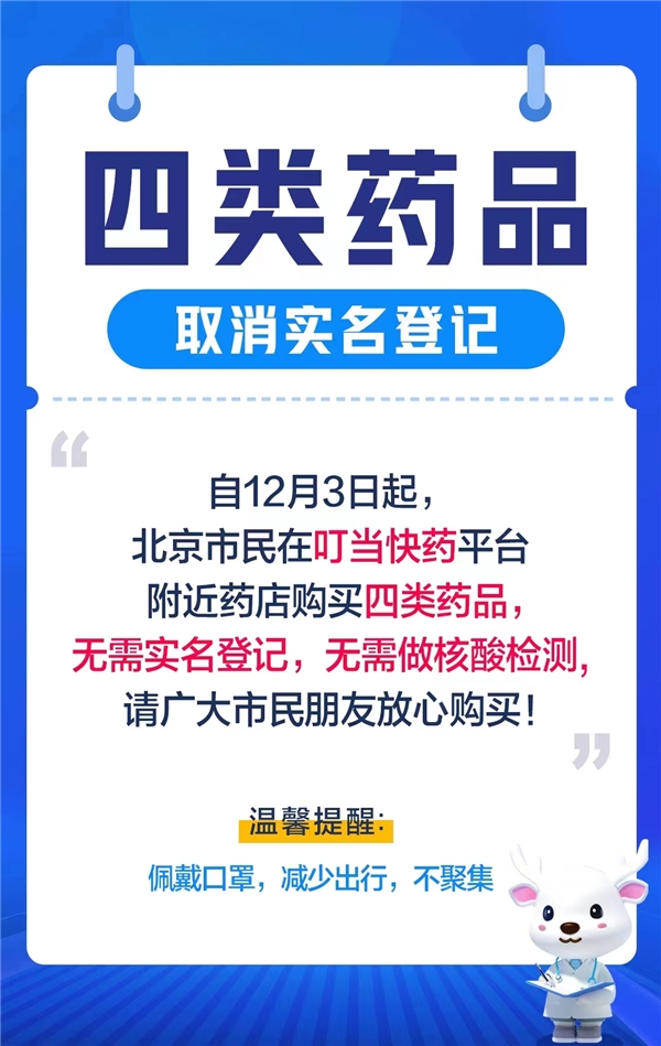 叮当快药北京已取消退热、止咳等“四类药品”销售登记