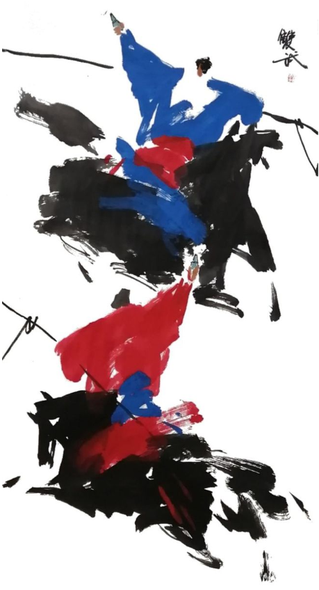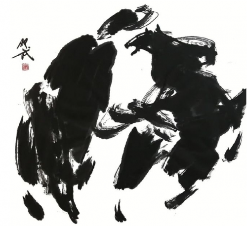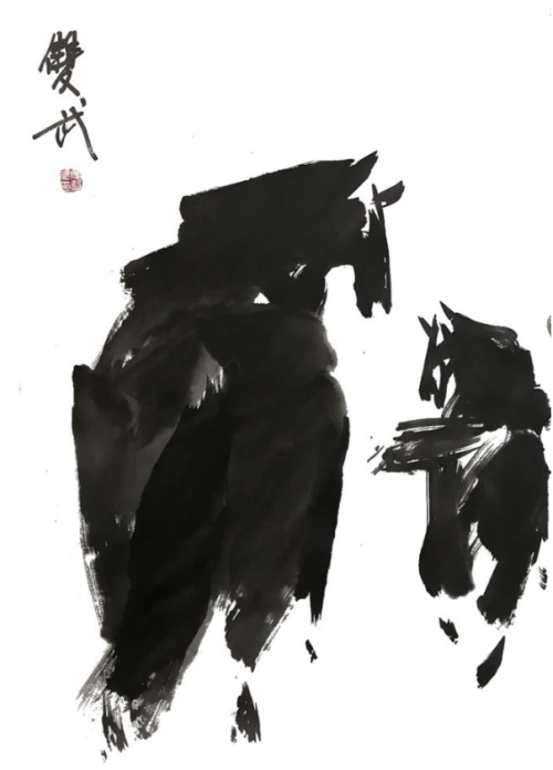 有这样一位画家,他的作品个性鲜明,有很强烈的时代感和现代艺术气息。他涉猎题材广泛,尤善画马、牛等物。他运用焦墨,重墨刻画物象,突出了表现对象的动、势、神。团块儿的组合、运动不仅是他造型的一大特点,同时也给观者很强的视觉冲击力。有媒体称他“大笔大墨大写意”。他笔下的奔马似有雷霆万钧之势,他笔下的牛又恰有万夫不当之勇。他的作品传递出去的永远是阳刚,奋发向上,百折不挠之精神。古语云“天行健君子以自强不息”,这种奋发图强、坚韧不拔的精神品质在他的作品当中得到了很好的体现。他就是我国当代大写意画家贾双武。小编就带大家了解一下贾双武先生其人其画。