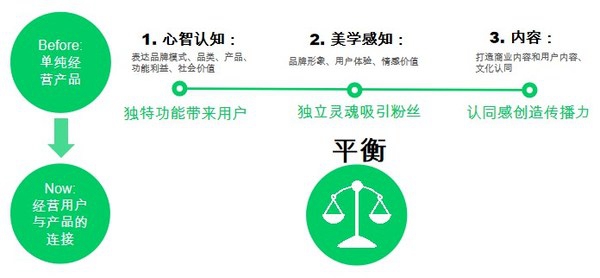 公司的产品秉承“打造自带传播力的自有品牌”的概念,即心智+美学+内容。品牌经营模式从原始的单纯经营产品转变为经营用户与产品的连接。心智,即表达品牌模式,品类,产品功能利益,社会效益。用独特的功能带来用户。美学,代表品牌形象,用户体验,情感价值。用独立的灵魂吸引粉丝。内容,打造商业内容,用户内容,使公司的文化得到广大顾客朋友们都认同。三者互相平衡,合力传播品牌美誉。欧发分享了他们开发商品的思维导图: