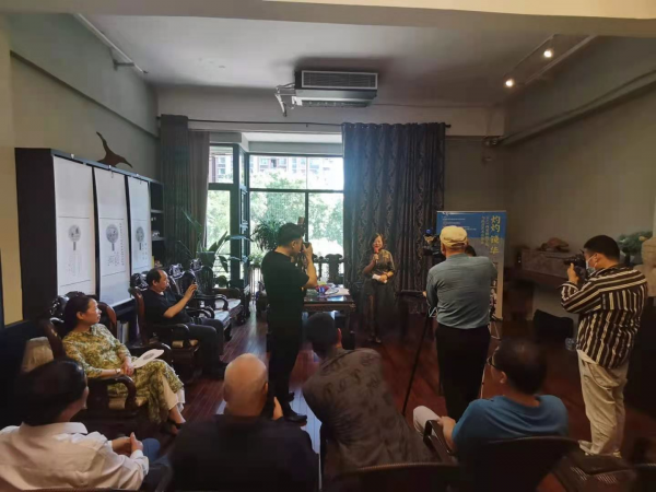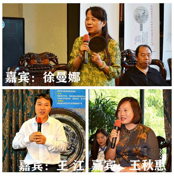 品鉴会由西安广播电视台著名节目主持人伊兰专题对话文化学者:岳峰老师对本次展出的铜镜题跋作品给与高度评价,从展出的“拓”、“跋”、“画”深入剖析,指出题跋诗词是艺术家对美的综合体现,对参展作者朴实率真的人品高度评价。文博专家蔡一阳先生从铜镜发展历史的角度讲述中国各时段的铜镜发展情况以及铜镜品鉴知识,尤其对本次展出的日本铜镜进行详尽的诠释;画家蔡昌林讲述拓片的历史和拓片之美;画家邓益民教授站在画家专业的角度深入分析铜镜纹饰之美和中国传统绘画的关系;徐曼娜女史从女性的角度谈铜镜和女性文化的关系;著名书法家王江谈拓片题跋的几点体会,首先是去伪存真,知道所题拓片是什么。其次是遣词造句,知道所题拓片写什么。再次是知白守黑,知道所题拓片怎么写。