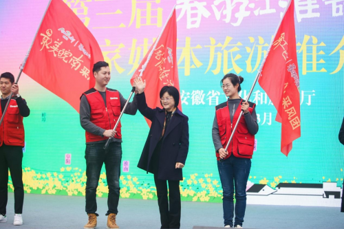 3月16日上午,由安徽省文化和旅游厅主办的第三届“春游江淮请您来”百家媒体旅游推介活动启动仪式在合肥举行。省政府副秘书长左俊宣布百家媒体采风活动启动;省文化和旅游厅厅长袁华致辞并为百家媒体采风团授旗。省文化和旅游厅副厅长王靖主持启动仪式。