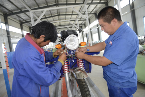 在十万台电动车总装线车间里,一排排崭新的电动三轮车整齐地排列着,十来个维吾尔族组装工人在不同的作业区间认真工作。对于目前的工作,喀克夏勒村的艾孜木•库万非常满意:“过去种地一年辛辛苦苦也就五六千块钱,现在在公司上班一个月就挣2000多元,比种地划算多了,还不受风沙吹,也不晒太阳。”