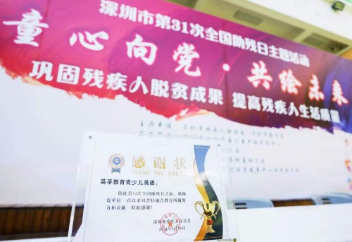 第31次全国助残日 英孚青少儿英语获颁感谢状