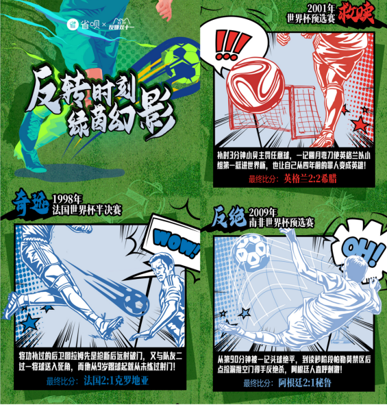 有人说,四年一度的世界杯,其实就是广大球迷的“精神蜜月”。当梅罗之争的话题又开始充斥人们的茶余饭后,各种为了熬夜看球准备的请假小妙招也层出不穷,就算不是球迷你也该知道,世界杯要来了。足球比赛永远出其不意,绿茵场上不计其数的逆转完美诠释着足球的魅力,也让很多比赛画面成为永恒的经典。近日,省呗在微博发起了名为“反转时刻”的话题讨论,盘点了足球场上一些激动人心的反转情节,掀起全网讨论高潮。