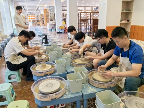 本团队参观武义婺州窑艺术馆,助力当地非遗文化保护与发展。婺州窑历史悠久,起源汉代,鼎盛于唐宋,衰弱式微于明初,是八婺大地上的劳动人民在漫长的历史长河中的劳动结晶,更是我国陶瓷艺术史上的一座不朽的丰碑。团队成员通过亲自参与和亲手制作非遗产品,不仅学到了非遗技艺的具体步骤和技巧,还在实践过程中感受到非遗文化的独特魅力和深厚底蕴。