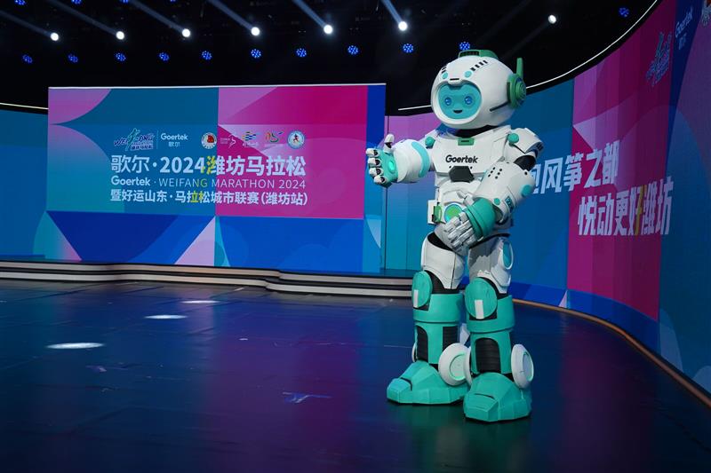在此次赛事中,奔跑大使歌小宝也为大家带来了丰富的互动和暖心的陪伴。15日的新闻发布会上,奔跑大使歌小宝的形象焕然一新,从萌趣风格升级为酷帅机甲形象。歌小宝将在潍马现场与大家实时交流、进行有奖问答,并与大家合影打卡。问题覆盖潍坊的历史人文、特产风貌、科技前瞻,把潍坊的城市魅力与历史文化底蕴宣扬出去。此外,歌尔还推出了“潍马元宇宙马拉松”小游戏和奔跑大使 AR 数字人合拍活动,以奔跑大使歌小宝为主体,展现对元宇宙世界的构想和数字人动捕技术。参赛者可以通过手机参与互动,赢取丰厚的奖品。