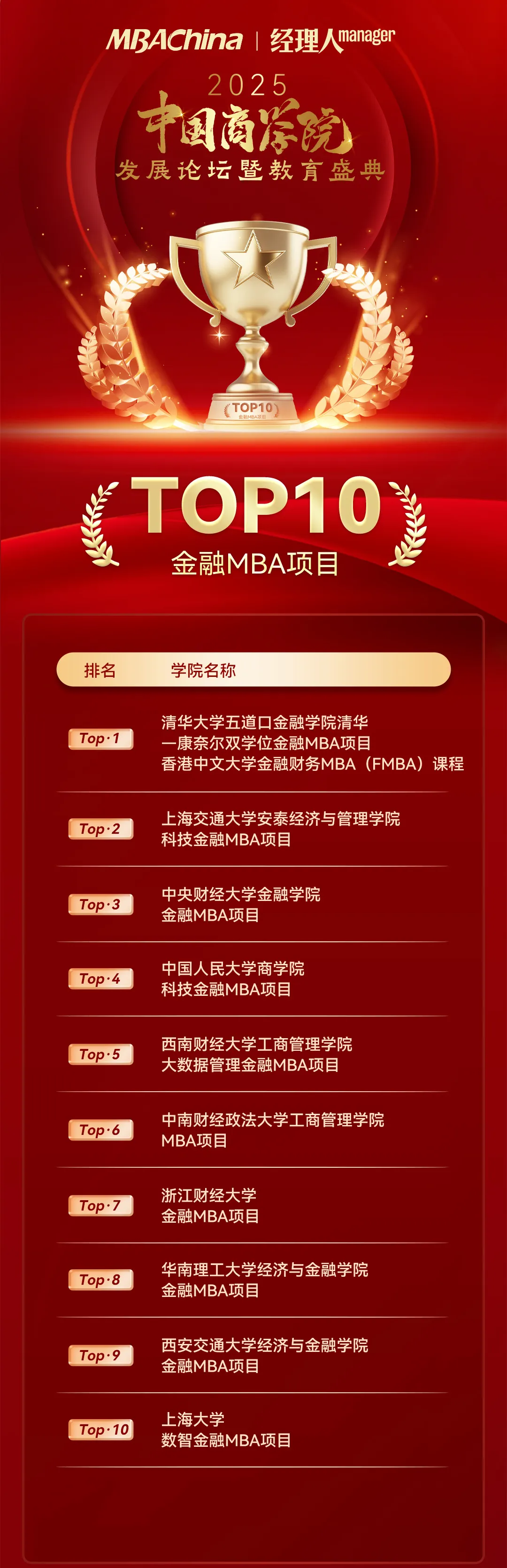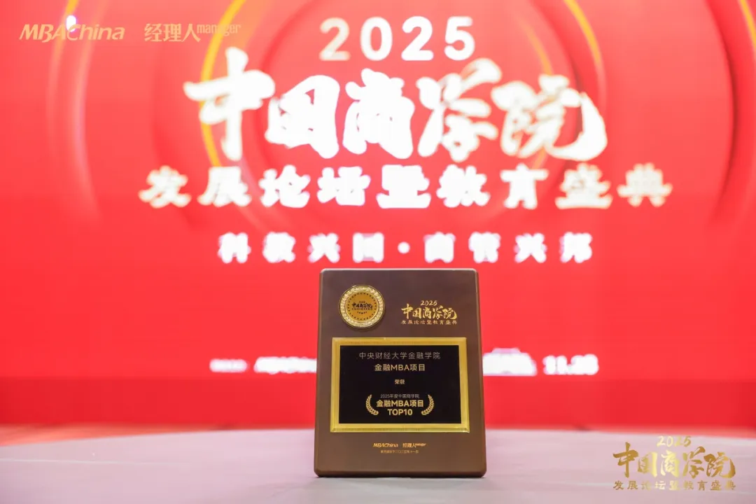 中央财经大学金融学院金融MBA项目荣获2025年度中国商学院金融MBA项目TOP3多项荣誉
